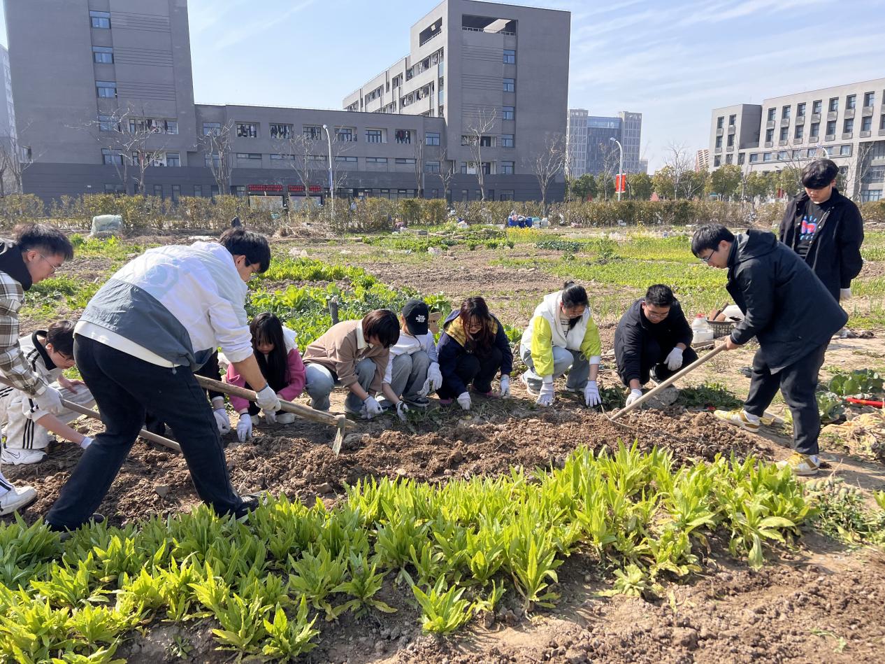 活动当日,阳光正好,同学们满怀热情地齐聚“疗愈菜园”。他们手持农具,认真进行松土播种、修剪枝叶等农事劳作。Wake Up压“离”心理工作室负责人王涛老师穿梭其中,现场指导同学们运用“正念种植法”,引导大家专注于呼吸节奏,感受大自然韵律与生命韧性。同时,王涛开展“五感减压法”,引导同学们调动视觉、听觉、嗅觉、味觉、触觉,体会劳动中的“心流体验”。这种独特体验有效缓解同学们压力,让大家在自然与劳作中找到情绪出口。参与活动的崔静远同学感慨:“在繁忙学习里,亲近自然机会难得。这次活动如钥匙,打开内心放松之门。手握锄头、脚踏土地,劳作让压力转化为前进力量,使我学会在忙碌中找生活美好。”