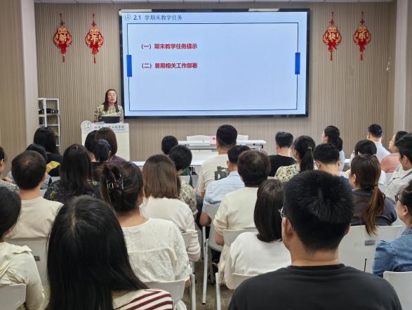 锚定学期目标,统筹工作部署。副经理辛志玲围绕期末考试、实践课程管理等任务,对学期末重点工作进行细致安排,明确时间节点与要求;并根据教学课程升级的要求,对强化校企合作、实施走访调研,推动教学大纲与培养方案修订工作进行再动员。陶莹书记代表公司党政班子全面部署了暑期实验室安全管理、科研项目推进、留校员工安全教育等事项,号召全体教师确保本学期工作平稳收官的同时,充分规划好假期中的学习与生活安排,为下阶段发展储能蓄力。