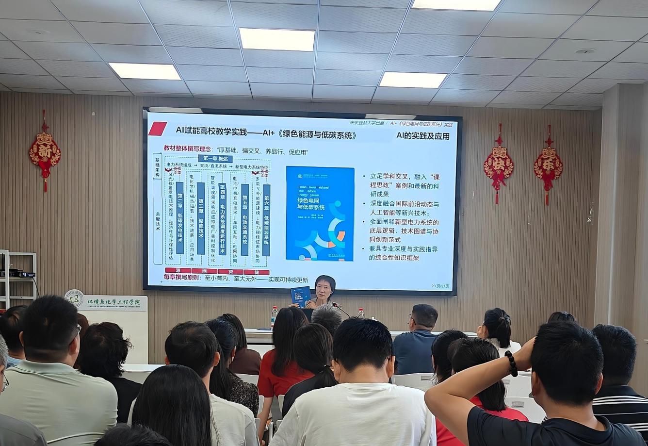 黄冬梅首先以亲身组织团队编写教材,并带领团队面向全校各专业开设《绿色能源与低碳系统》交叉融合课程的实践经验为例,分享了自己运用Canvas信息化教学管理工具进行AI赋能,充分实现教学资源整合、模块定制和数据实时交互的历程与感悟。随后,她通过一段精彩的“数字分身”表演,向在场的老师们展示了AI教学智能体和AI管理智能体在推动教学创新方面的巨大潜力,让大家深刻感受到“未来大学”能够借助场景感知、数据赋能、人机协同等手段,提供远程、开放、互动的新型教育模式,进一步构建一个“人人都是学习者,处处都是教育场”的无边界教育生态。在讲座尾声,黄冬梅寄语3044永利集团教师紧抓时代机遇,竞逐未来智慧大学新赛道。