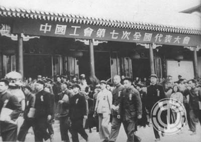 52日至11日 中国工会第七次全国代表大会在北京举行。刘少奇代表中共中央在大会上致祝词。大会制定了工会在国家进入有计划建设时期的方针和任务,通过了《关于中国工会工作的报告的决议》《关于修改中国工会章程的决议》和《中华人民共和国工会章程》,并选举出中华全国总工会第七届执行委员会。12日,中华全国总工会第七届执委会举行第一次会议,选举刘少奇为名誉主席,赖若愚为主席。