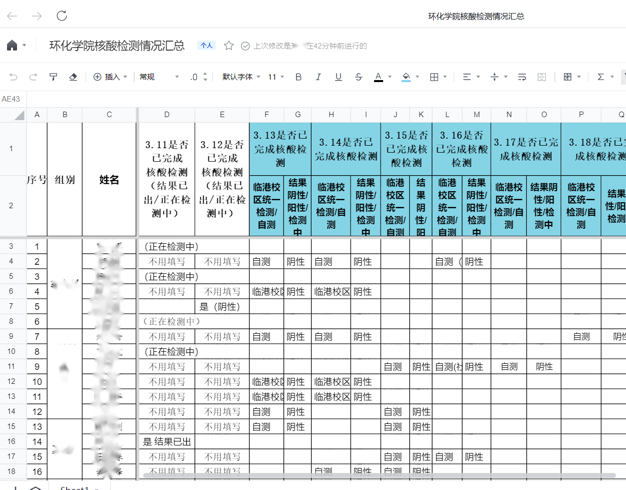 面对复杂严峻的防疫形势,健康日报、涉流调教师信息等各类数据统计的准确性和实效性就显得尤为重要。公司积极利用现有的线上资源,积极拓展信息收集渠道,拓展企业微信等公众平台,采用线上即时统计文档,全覆盖地进行数据排摸工作。同时,为了保证数据传递的及时性和精准,公司利用网格化管理措施,实行定岗到人,网格化批次管理,确保数据能够及时、准确到位,为疫情期间的服务保障做好精准的数据支撑。