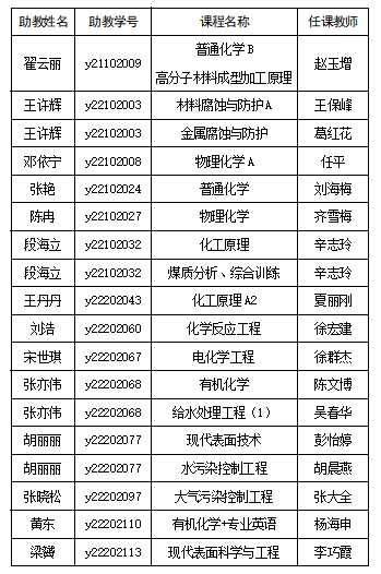 根据学科特点和课程要求,经过研究生个人申请和老师选择,现将2022-2023学年第 1 学期研究生助教名单公示如下: