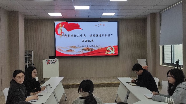 为学习贯彻党的二十大精神,深入领会习近平新时代中国特色社会主义思想的理论品格和精神实质,自觉将个人奋斗融入国家社会发展历史征程。4月7日下午,“青春践行二十大 砥砺奋进新征程”系列主题教育活动之二:经典诵读、理论宣讲微课程比赛在公司A312顺利开展。本次诵读比赛由李艳老师主持,并邀请了各支部书记作为评委打分。