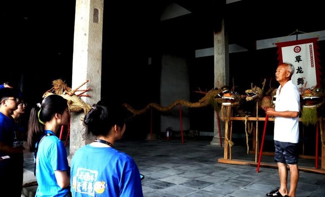 在实践过程中,队员们从草龙舞剧中深刻感悟到红色基因“生生不息”的“家国情怀”,并结合红色文化和“草龙舞”非遗,为扬溪镇打造具有地方特色的红色非遗产品,赋予传统文化新活力。作为扬溪镇地理位置和环境极佳的住宿场所,三味书屋是扬溪镇极具代表的文化交流空间,实践队以此为契机,提出了通过打造精品民宿(三味书屋)的红色非遗文旅坐标,向来访者传递红色基因和家国情怀,使旅客在享受精致住宿的同时,也能切身感受到中华文明的博大精深。非遗代表着地方特色和历史底蕴,具有独特的魅力和韵味,本次实践过程以“非遗”为主题,推广和传承非遗文化,深入了解和学习非遗技艺,结合当地实际情况,创新传统工艺和设计,为扬溪镇发展注入新的活力和创意。这次实践活动不仅深刻展现红色文化和蓝色文明传承的重要性,而且体现了真理力量和实践伟力的魅力。实践队将继续努力传承非遗文化和推动红色文旅发展,为扬溪镇的发展焕发出新的生机,展示出非遗文化的独特魅力,让更多人了解、认可和传承扬溪的非遗传统。我们坚定地相信,家国情怀和红色基因的力量将在中国人民的共同努力下继续生生不息,让中华文明在现代社会璀璨绽放!