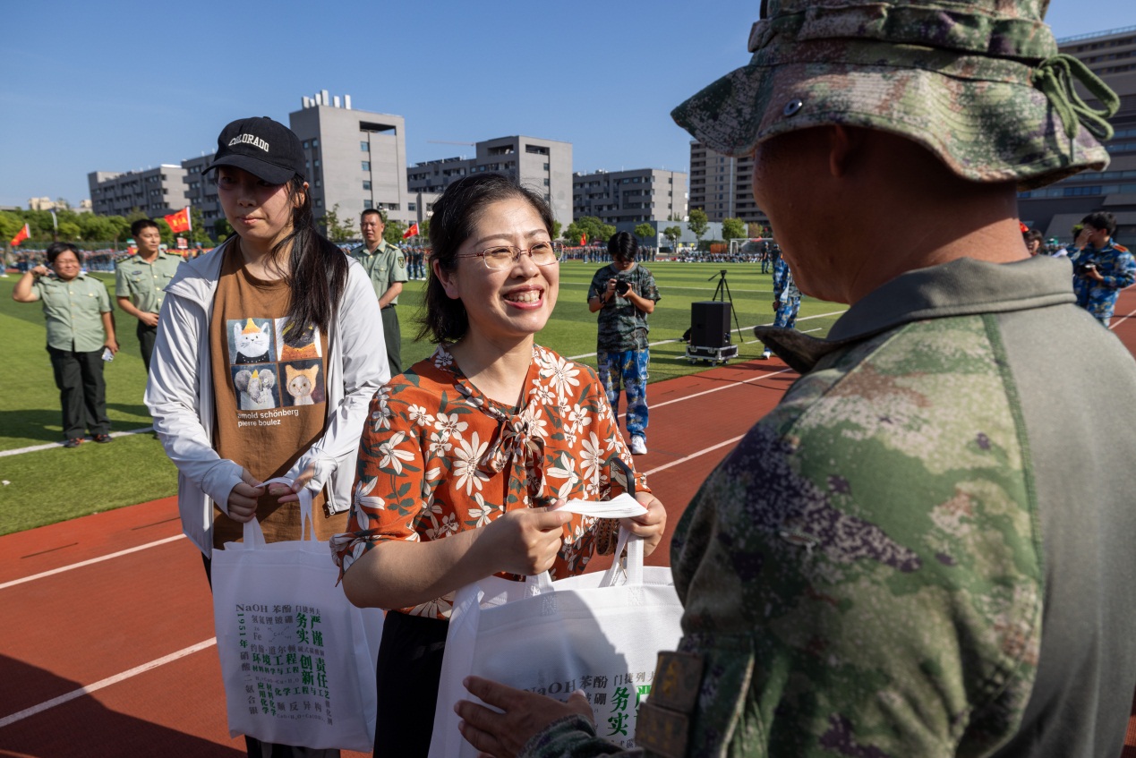 党委书记陶莹对教官们为军训付出的辛勤劳动表示了衷心的感谢,对同学们激情饱满、吃苦耐劳的精神表示肯定和表扬。她指出,军训是每位老员工必修的一门实操技能课程,也是进入大学之后国防教育的第一课。希望同学们积极参训,珍惜军训时光,通过军训磨炼意志,砥砺品格,强健体魄,用行动和汗水铸就无悔青春。同时勉励新生们要立“以吾辈之青春,捍卫中华之盛世”的豪情壮志, 做有理想、敢担当、能吃苦、肯奋斗的新时代好青年。