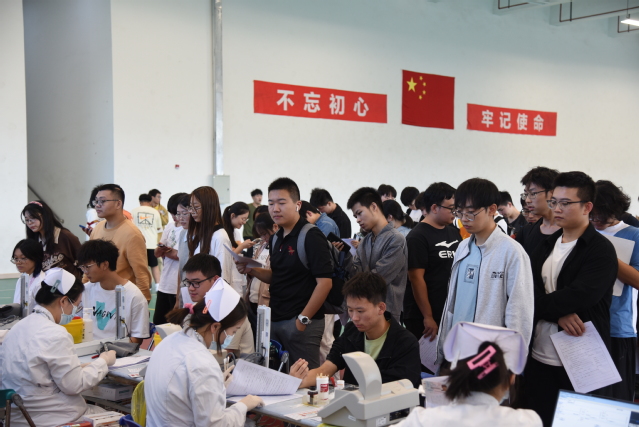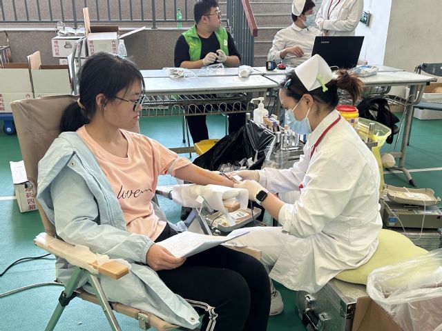 在体育馆一楼大厅,献血志愿者们配合医务工作者做好各项准备工作。献血登记处、健康体检、献血环节、休息处以及慰问品发放处等各个环节协调有序,志愿者们齐心协力,为前来无偿献血的同学们提供细致周到的服务。医护人员有条不紊地进行献血活动,保障了整个流程的顺利进行。