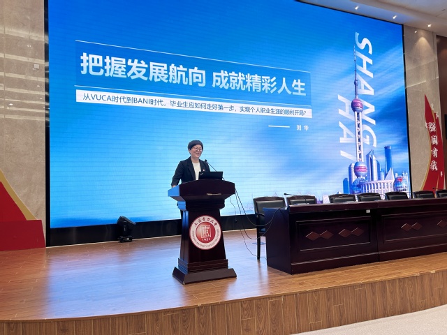 大会分为三个阶段进行。第一阶段为就业指导讲座。刘华从“把握发展航向、成就精彩人生”做题,从“审时度势”、“自我认知”、“过关斩将”、“乘风起航”四个板块展开分享,她以当前的就业形势为切入口,指导同学们基于自身的优势进行职业规划,根据自身特长来决定未来工作发展。她以企业需求为导向,就求职渠道、面试准备等方面提出建设性意见,希望全体毕业生们可以选择一个自己适合的赛道,盘点自身优势,找到满意的工作。