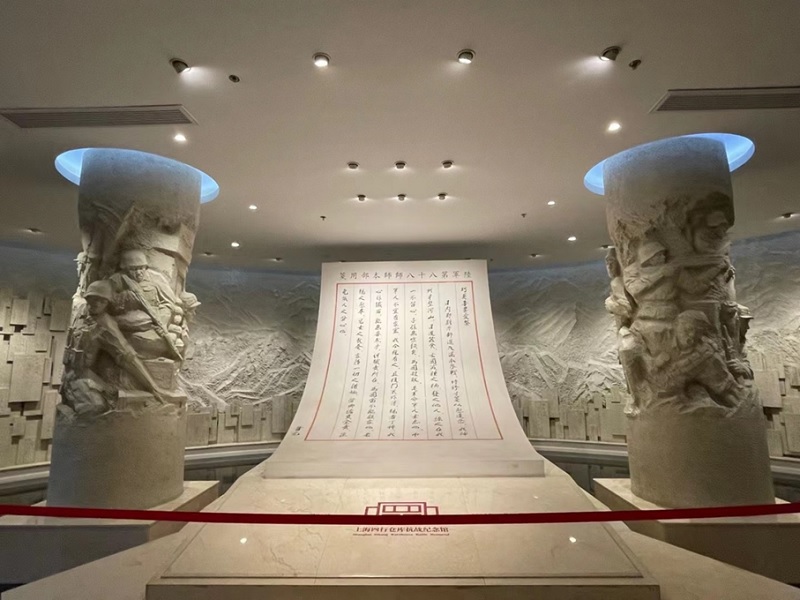 走进馆内,党员老师们认真观看展品和文字图片、仔细聆听公益讲解,依次参观了“血鏖淞沪”“坚守四行”“孤军抗争”“不朽丰碑”等展厅,通过实物、雕塑、现代科技等手段再现当年战斗场景,回顾了“八百壮士”用生命固守上海、抗击日军的悲壮历史。